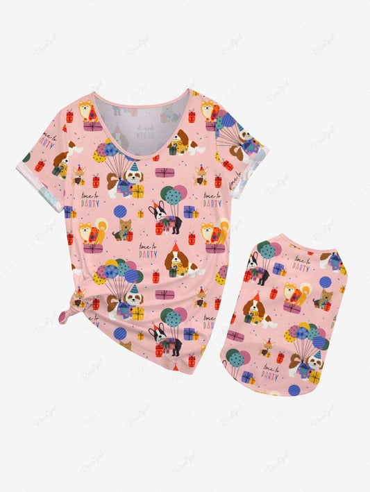 Colorful Cute Puppy Balloons Gift Printed T-shirt Dog And Owner Matching Outfits