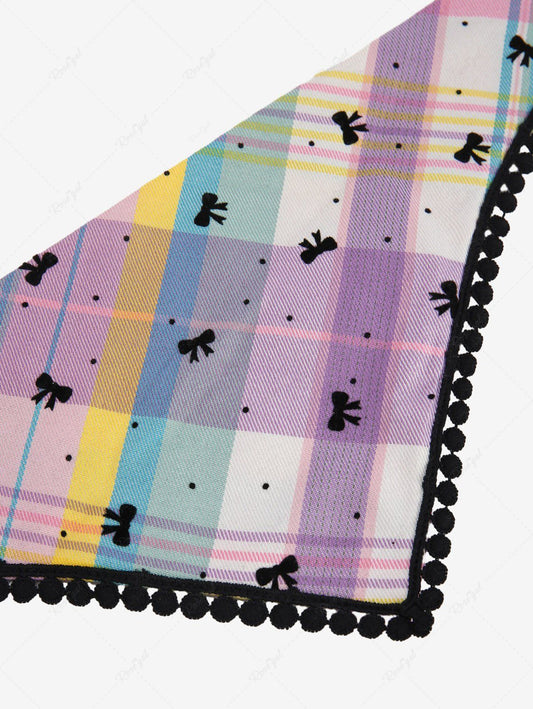 Pet's Candy Color Plaid Bowknot Printed Lace Trim Bandana Bibs