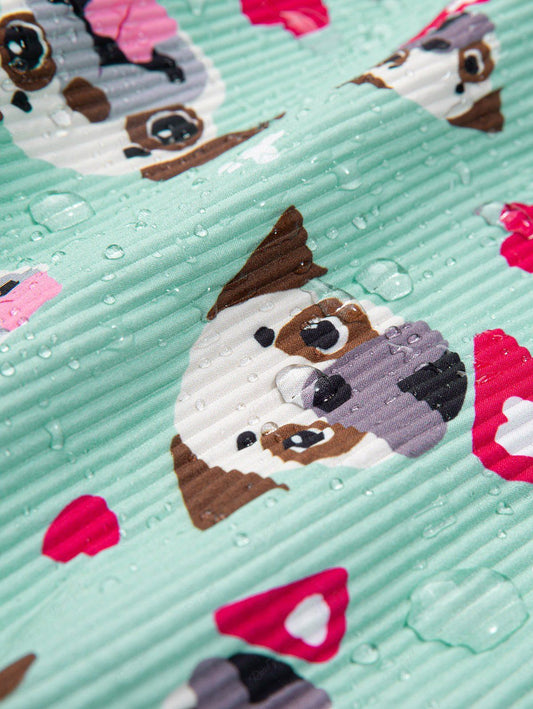 Pet's Cute Dog Heart Paw Printed Ribbed Push Buckle Waterproof Bandana Bibs