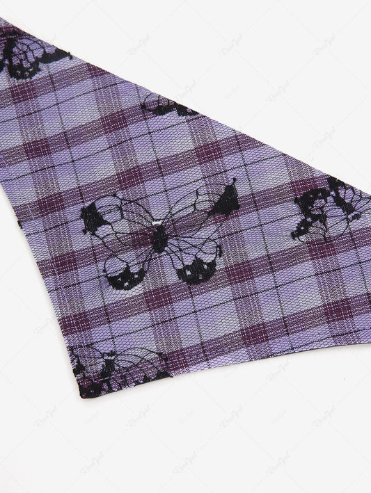 Pet's Butterfly Plaid Printed Push Buckle Bandana Bibs