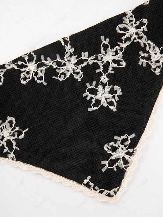 Pet's Floral Jacquard Textured Lace Trim Bandana Bibs