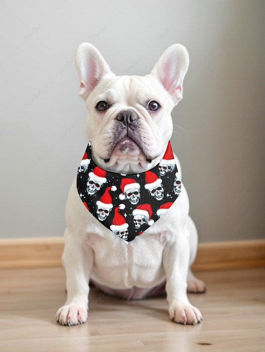 Pet's Skull Christmas Hat Printed Bandana Bibs