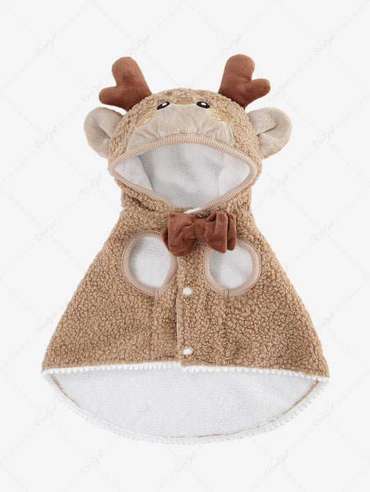 Pet's Elk Graphic Fleece Lining Bowknot Hooded Christmas Vest