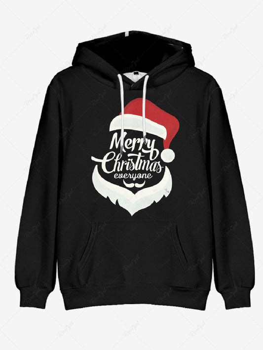 Plus Size Christmas Hat Letters Santa Claus Printed Pocket Drawstring Pullover Long Sleeves Hoodie