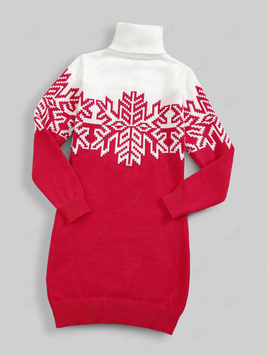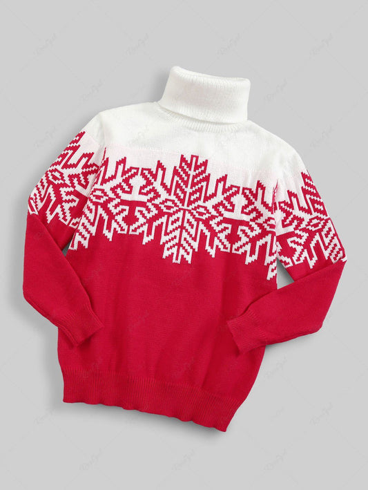 Christmas Snowflake Colorblock Printed Turtleneck Sweater