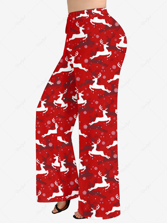 Plus Size Christmas Elk Snowflake Printed Wide Leg Pants
