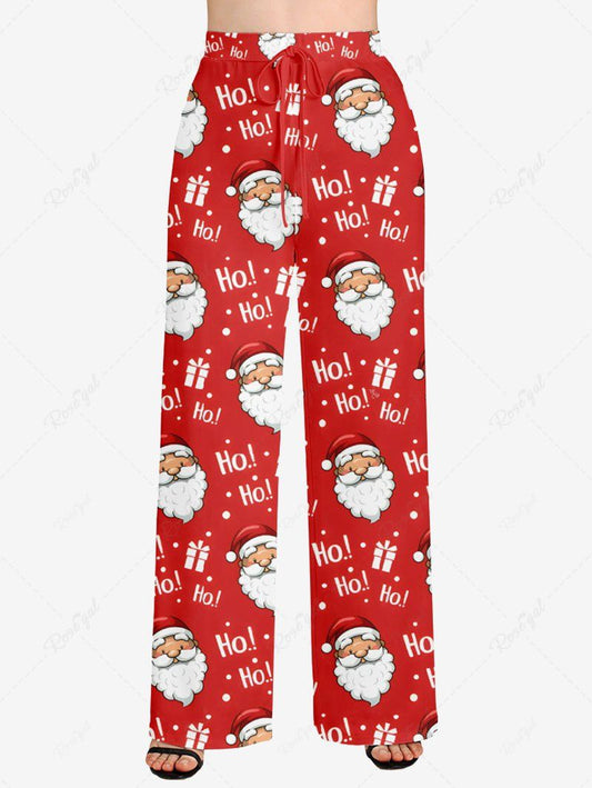 Plus Size Christmas Santa Claus Gift Box Printed Drawstring Wide Leg Pants