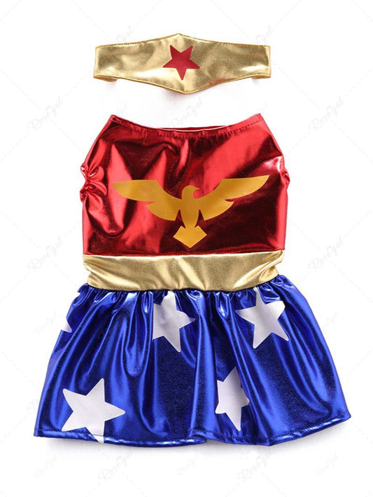 Pet's Glitter Stars Bird Printed Dress with Hairband Costume Cosplay