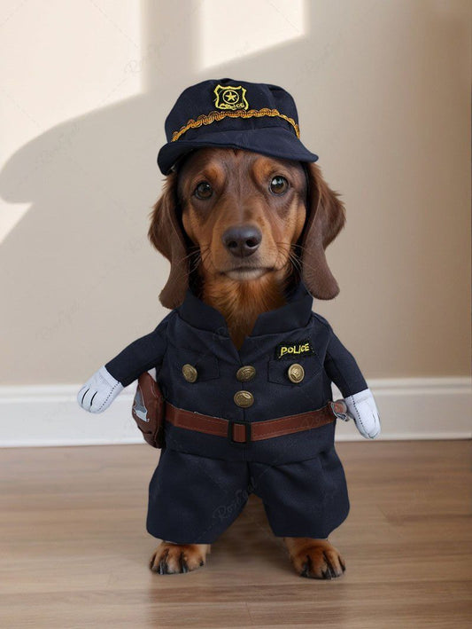 Pet's Button Buckle Belted Police Cosplay Costume with Hat