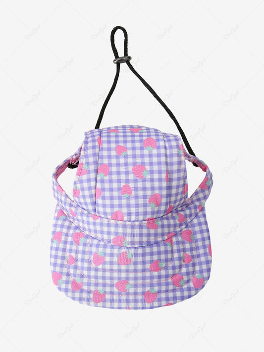 Pet's Strawberry Plaid Printed Cap With Windproof Rope