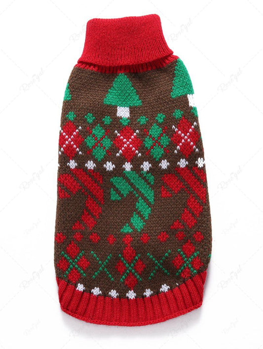 Pet's Turn-down Collar Snowflake Leaf Striped Christmas Knit Sweater
