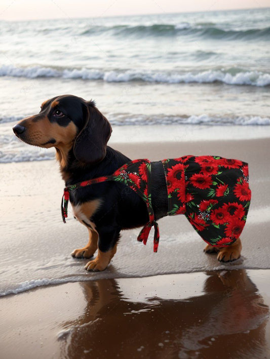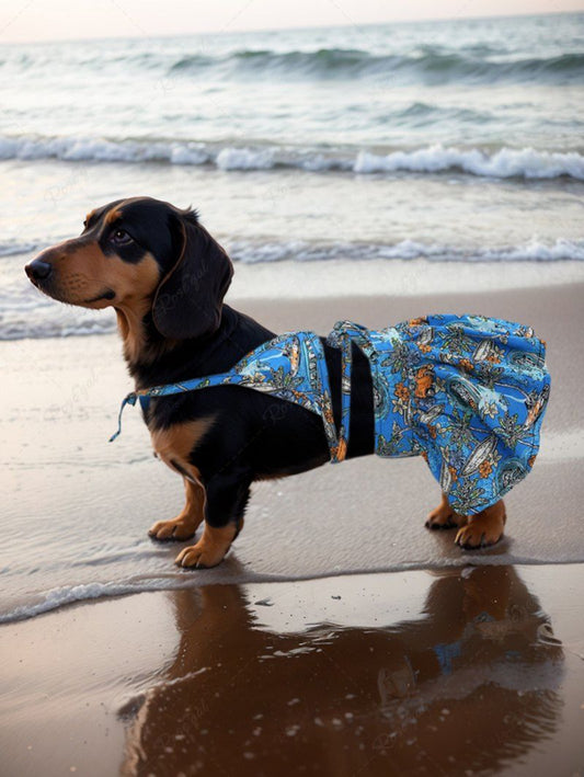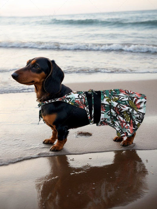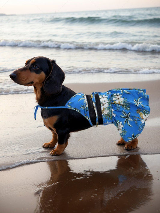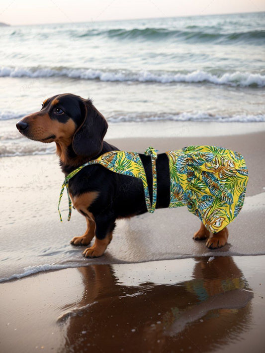 Pet's Colorful Tropical Leaves Printed Hawaii Halter Velcro Strappy Skirt Bikini Set