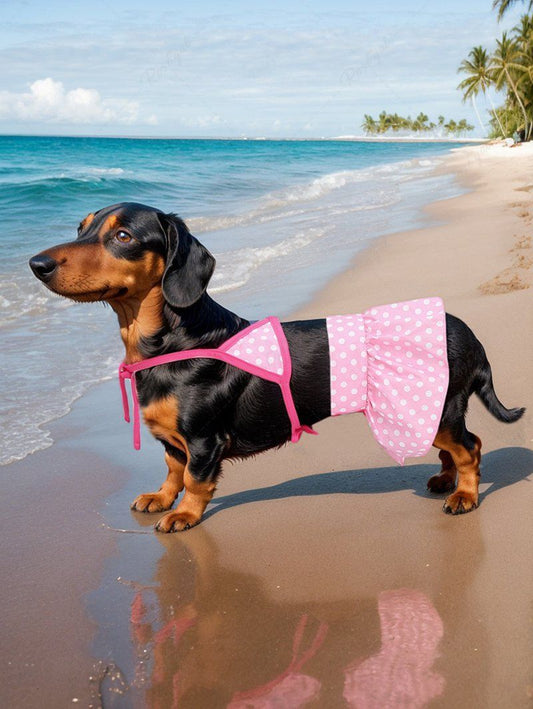 Pet's Polka Dot Printed Hawaii Velcro Halter Skirt Bikini Set