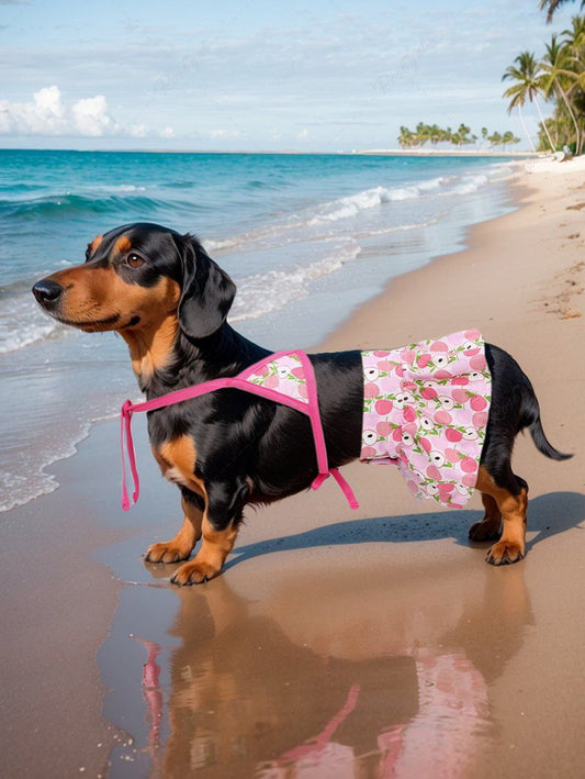 Pet's Coconut Tree Floral Tropical Leaves Pineapple Printed Hawaii Halter Strappy Velcro Skirt Bikini Set