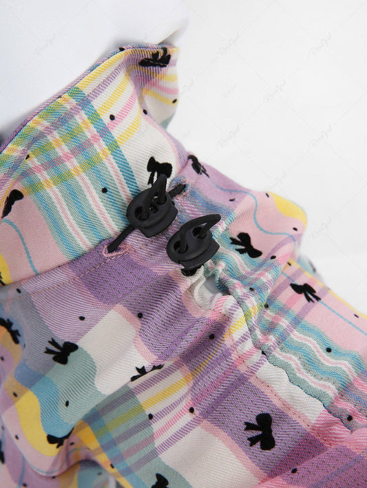 Pet's Candy Color Plaid Bowknot Polka Dot Printed Toggle Drawstring Button Shirt