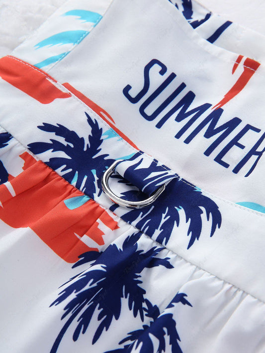 Pet's Coconut Tree Summer Letters Printed Lace Trim Hawaii Dress