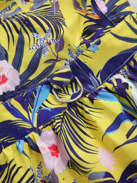 Pet's Tropical Leaf Flowers Printed Lace Trim Hawaii Dress