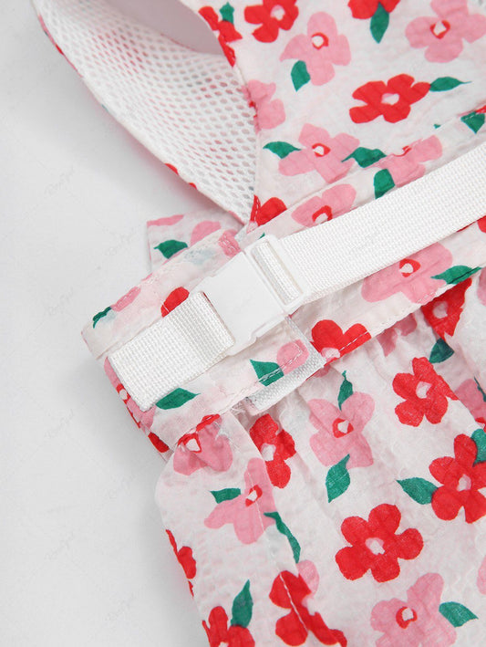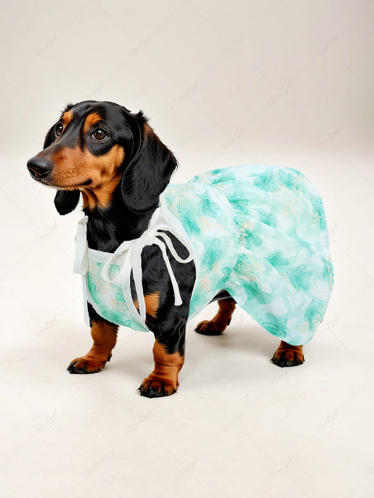 Pet's Flower Leaf Printed Floral Embroidery Tied Dress