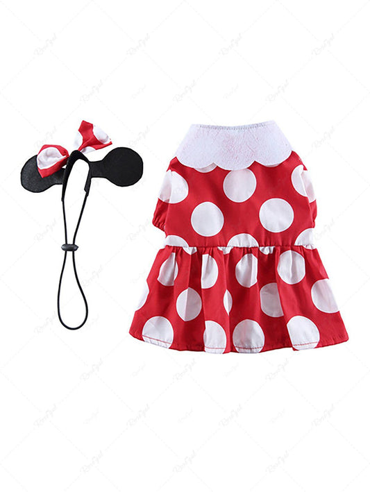 Pet's Halloween Cosplay Mickey Mouse Dot Printed Dress With Toggle Drawstring Headband