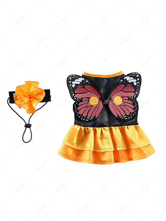 Pet's Halloween Butterfly Dress With Toggle Drawstring Flower Headband