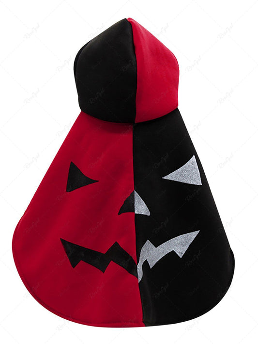Pet's Halloween Costume Pumpkin Face Colorblock Printed Hooded Cloak