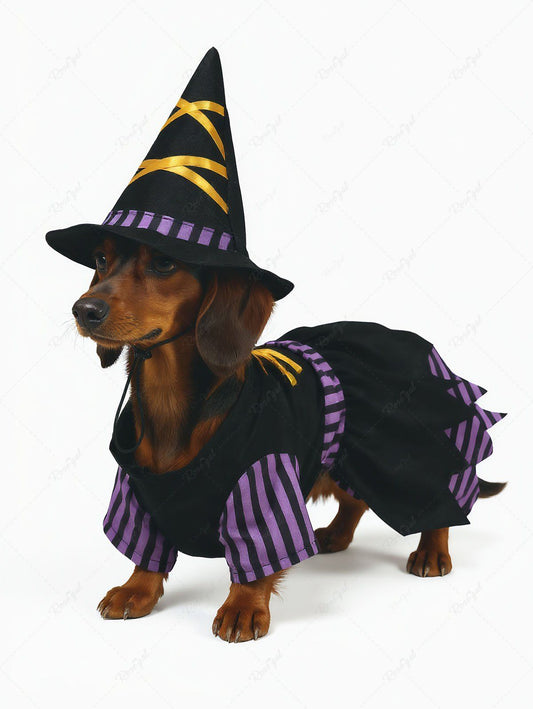 Pet's Halloween Costume Wizard Cosplay Shirts and Hat Set