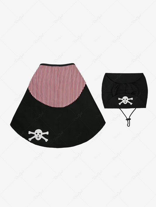 Pet's Halloween Pirate Costume Skull Stripes Print Cape Cloak With Hat