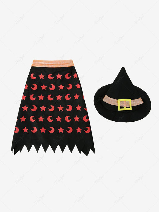 Pet's Halloween Costume Star Moon Print Wizard Cape Cloak With Hat