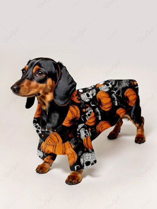 Pet's Halloween Costume Pumpkin Skulls Bat Spider Web Printed Shirt