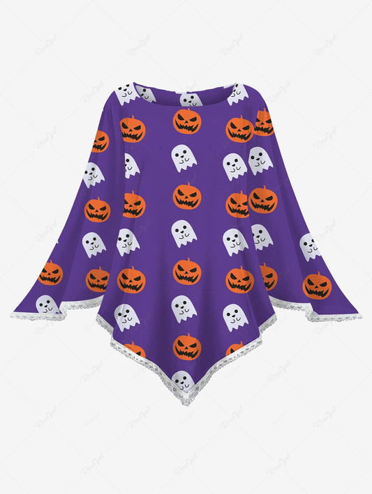 Plus Size Halloween Pumpkin Ghost Print Asymmetric Pullover Cape Cloak