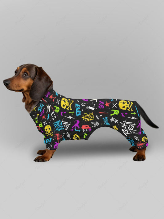 Pet's Colorful Skull Star Microphone Letters Printed Hawaii Music Button Pajama