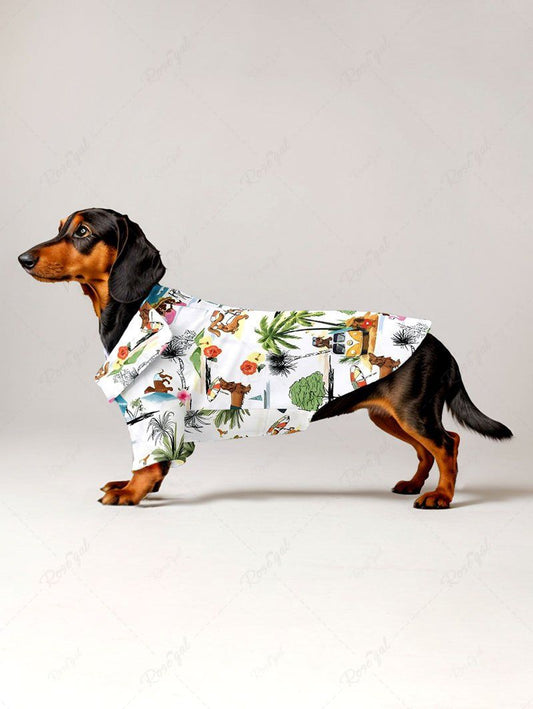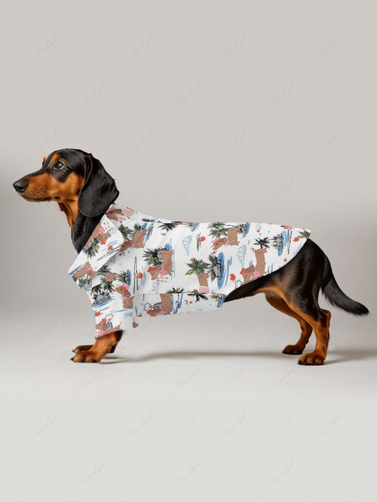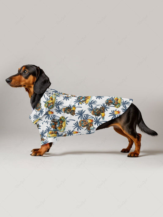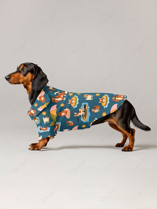 Pet's Cute Dog Sun Beach Print Hawaii Button Shirt