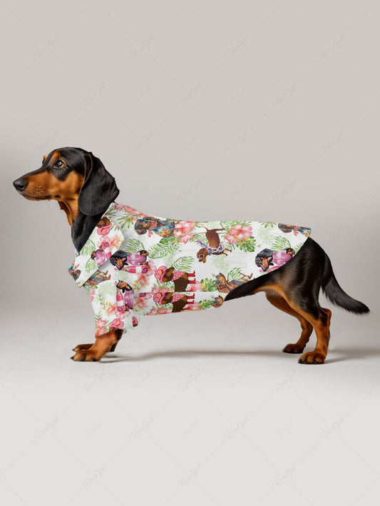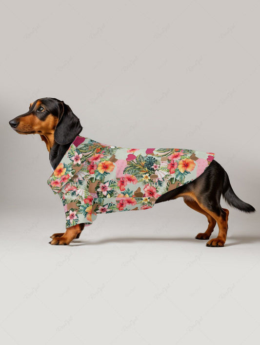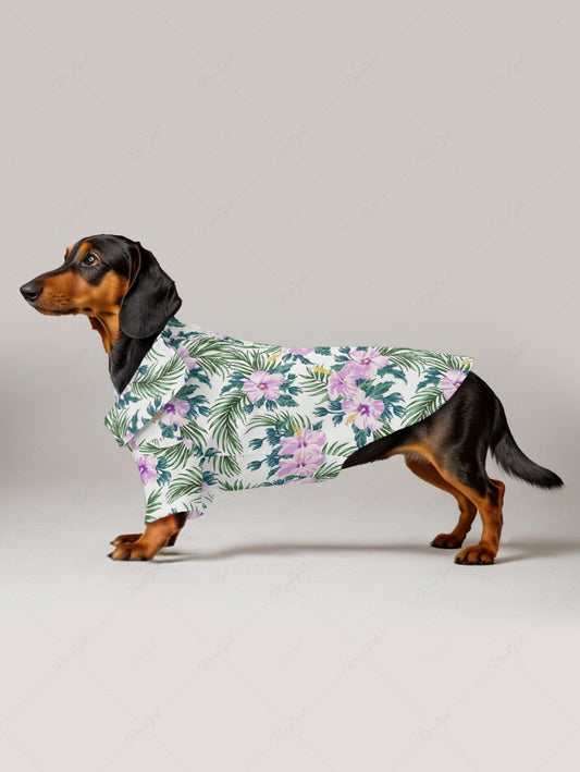 Pet's Dogs Hibiscus Flowers Tropical Leaf Print Hawaii Shirt