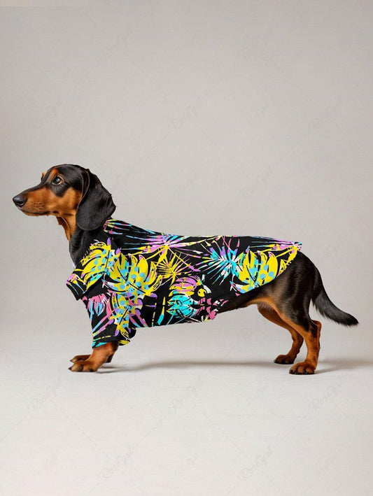 Pet's Colorful Floral Leaves Printed Hawaii Button Shirt