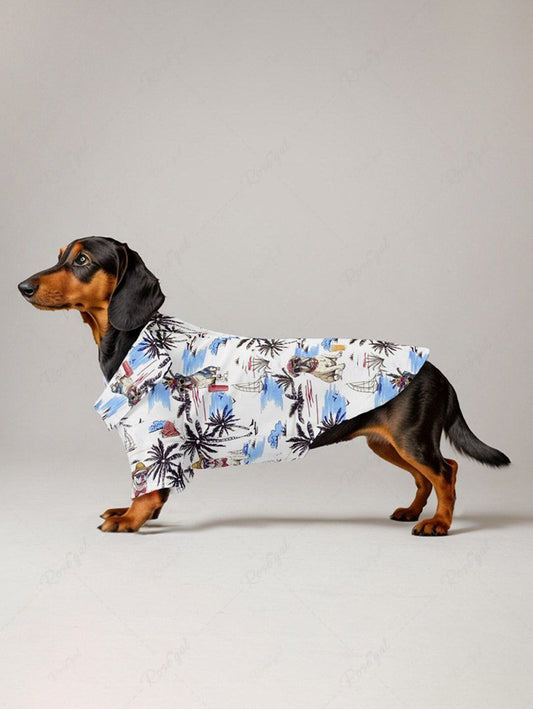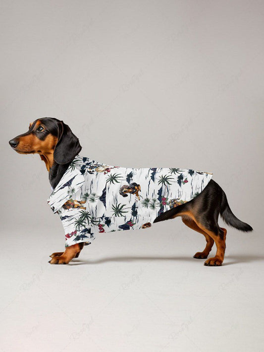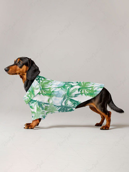 Pet's Coconut Tree Printed Hawaii Button Shirt
