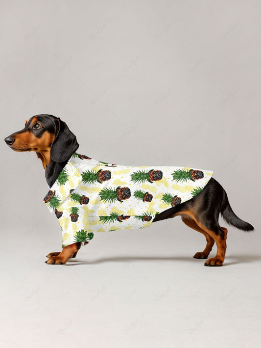 Pet's Dog Pineapple Tropical Leaves Spotted Printed Hawaii Button Shirt