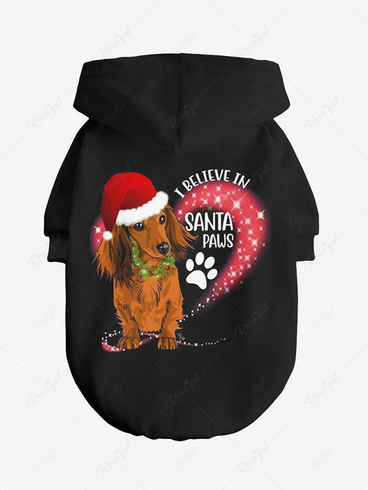 Pet's Christmas Hat Dog Letters Paw Glitter Stars Printed Button Hoodie