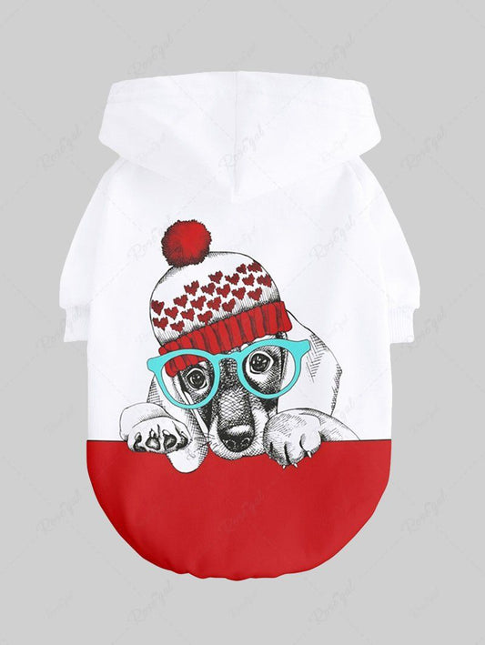 Pet's Christmas Dog Heart Hat Printed Button Hoodie
