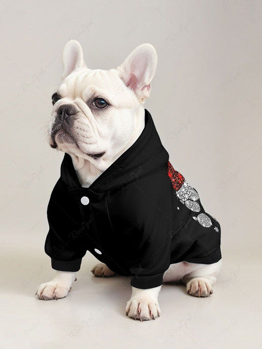 Pet's Glitter Sparkling Rhinestone Christmas Hat Snowflake Paw Printed Button Hoodie