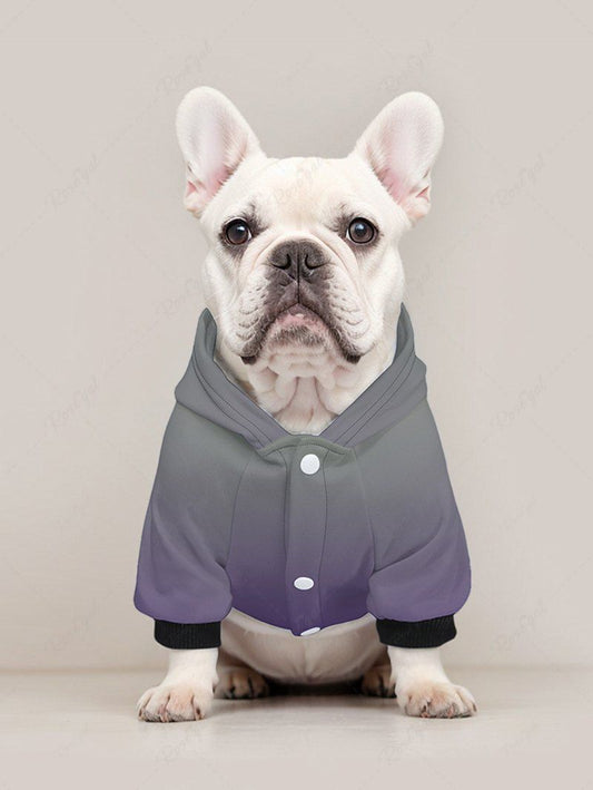 Pet's Letter Paw Ombre Printed Button Hoodie