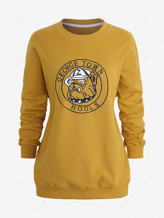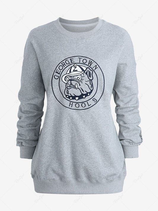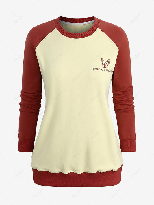 Plus Size Dog Letters Jacquard Embroidery Two Tone Pullover Long Sleeves Sweatshirt