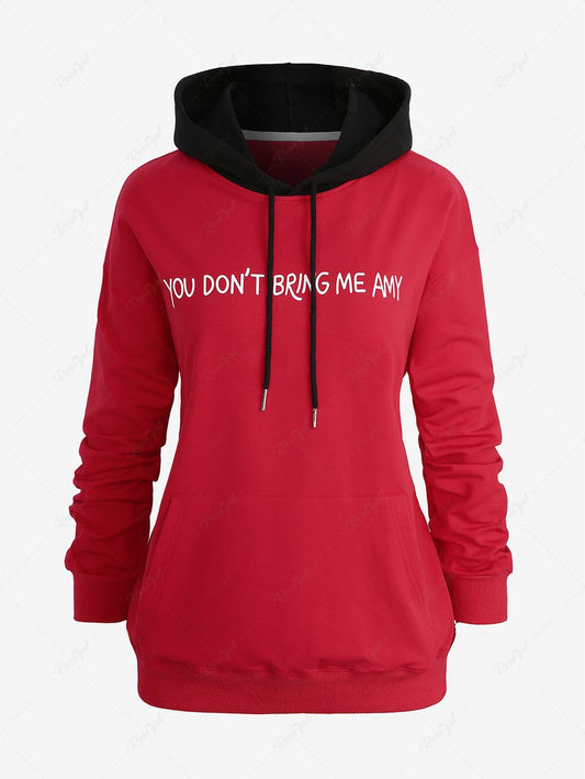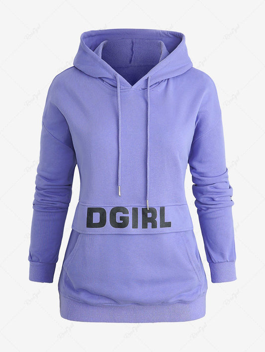 Plus Size Letters Printed Pocket Drawstring Pullover Long Sleeves Hoodie