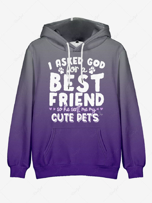 Plus Size Letter Paw Ombre Printed Pocket Drawstring Pullover Long Sleeves Hoodie