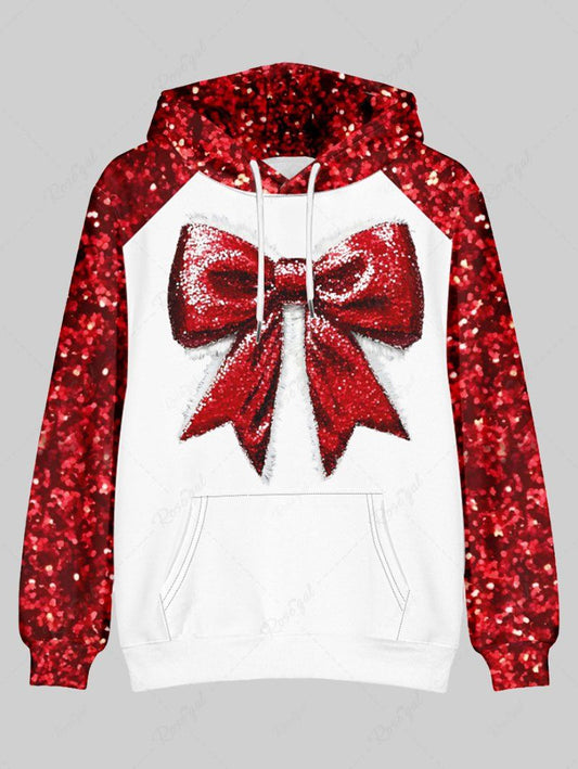 Plus Size Christmas Bowknot Sparkling Sequin 3D Printed Pocket Drawstring Hoodie