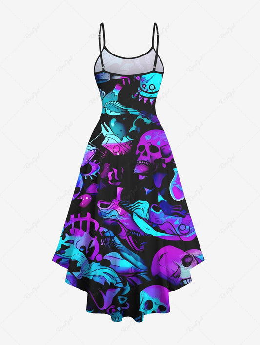 Plus Size Skull Bird Graffiti Print High Low Asymmetric Cami Dress