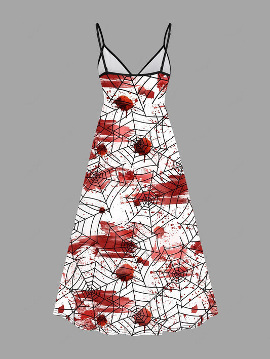 Plus Size Halloween Spider Web Paint Splatter Blood Print Surplice Cami Dress