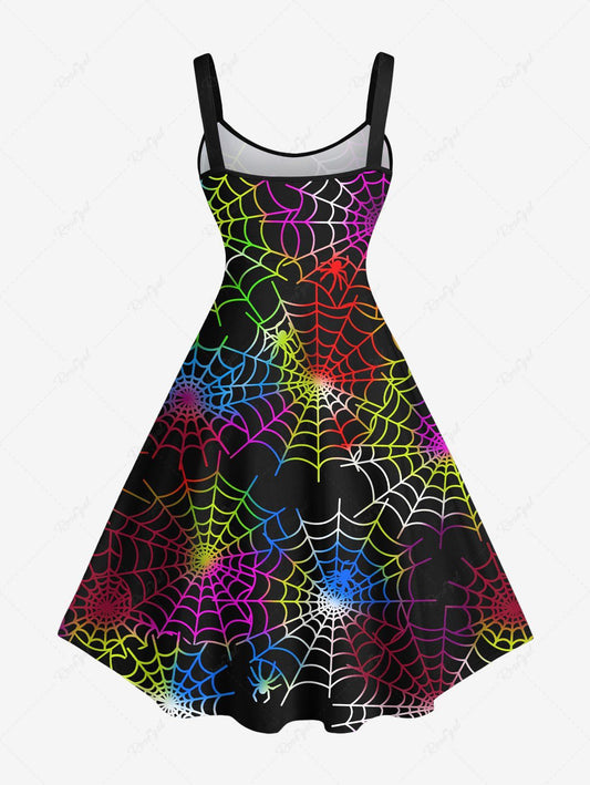 Plus Size Halloween Colorful Spider Web Print Tank Dress