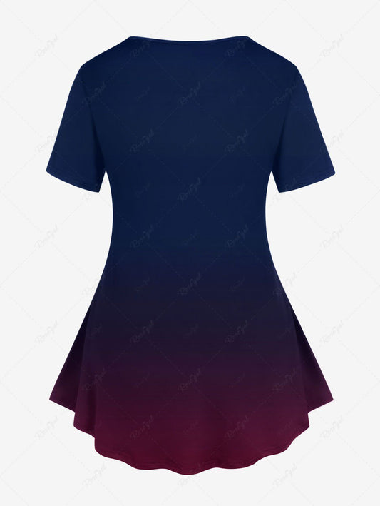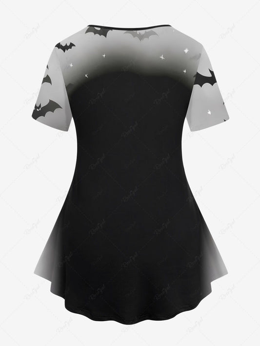 Plus Size Pumpkin Dog Bat Ombre Galaxy Print Halloween Women T-shirt