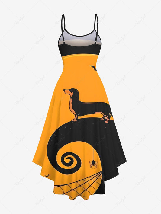 Plus Size Dog Spiral Tree Spider Print Halloween High Low Asymmetric Cami Dress