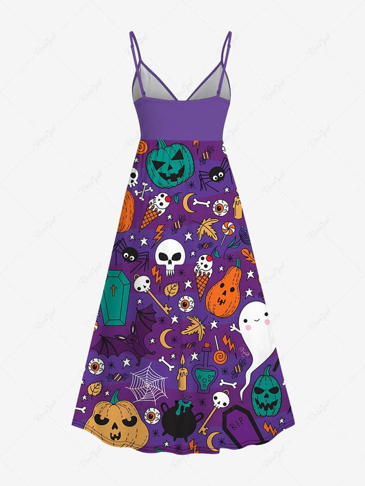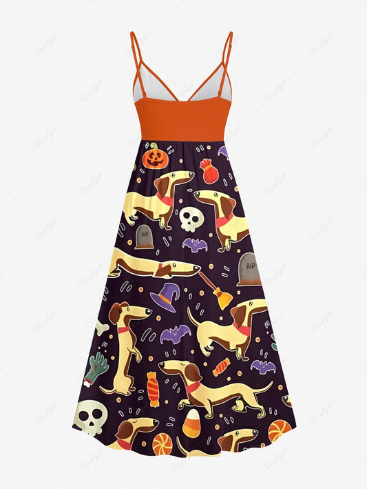 Plus Size Dog Skull Pumpkin Bat Candy Print Halloween Surplice A Line Cami Dress